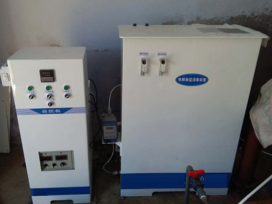 根據(jù)污水水量,國(guó)家規(guī)定按照每噸污水30—40克有效氯進(jìn)行投加。一般每天100至150噸流量的污水,需要選擇設(shè)備每小時(shí)生產(chǎn)有效氯量為500克的次氯酸鈉發(fā)生器一臺(tái)。設(shè)備運(yùn)行過(guò)程中,每噸污水的處理費(fèi)用為:5.5 × 4.5 ÷ 150 = 0.165元。如果污水水量較大,則可選用更高產(chǎn)藥量的設(shè)備。