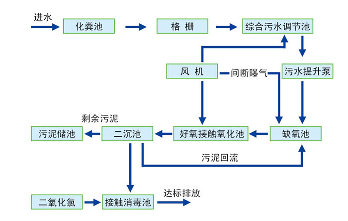 (6)污泥池:經格柵攔載的污物和沉淀池污泥均進入污泥池.污泥池內設有污泥硝化系統(tǒng).污泥池上清液回流至調節(jié)池。
