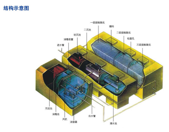 上部可作綠地、人行道等,充氧效率高,運行時對周圍無影響;采用一體化設計,潛水泵可設于設備之中,占地少、投資小、運行成本低,配備全自動控制系統(tǒng),無需人員